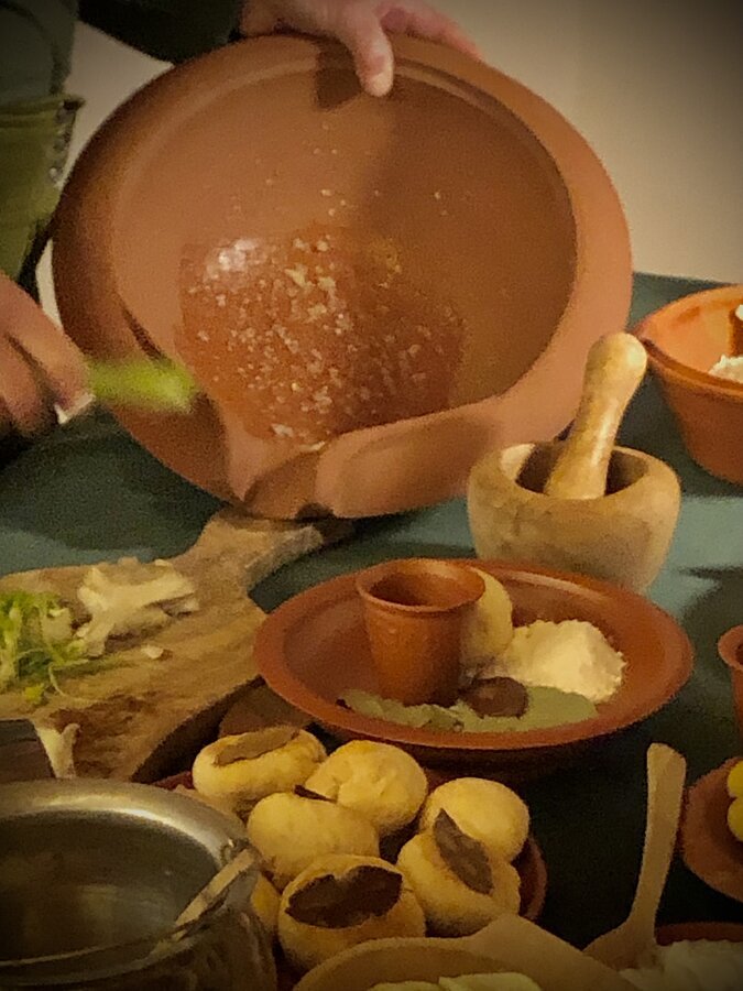 Während die Speisen garen, räumen wir mit Klischees auf und erzählen, wie vielfältig, genussvoll und hochwertig die römische Küche tatsächlich war – geprägt von Kräutern, Olivenöl, Nüssen, Wein und Gewürzen aus dem ganzen Reich.