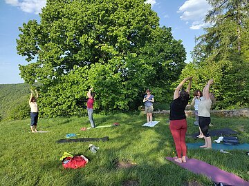 Wanderung auf den Michelsberg und Erkundung der vorzeitlichen Besiedelung. Wir genießen den Panoramablick und machen auf dem Plateau eine Yogastunde. Unbedingt eigene Matte mitbringen. Wir gehen über den Ostabstieg in den Ort zurück und entspannen erneut beim Postwirt.