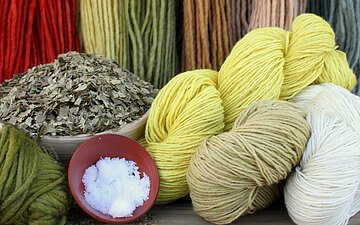 Im Kurs wir vom Sammeln der heimischen Färbepflanzen bis zum Beizen und Fixieren eine solide Basis vermittelt.