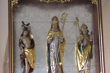 - Über diesen Altären stehen aber die alten wertvollen Figuren aus der Spätgotik zwischen 1460 und 1470: Auf dem Hochaltar die Holzplastik des hl. Martin; St. Sebastian und St. Wolfgang daneben sind etwas jünger (Beginn des 16. Jahrhunderts).